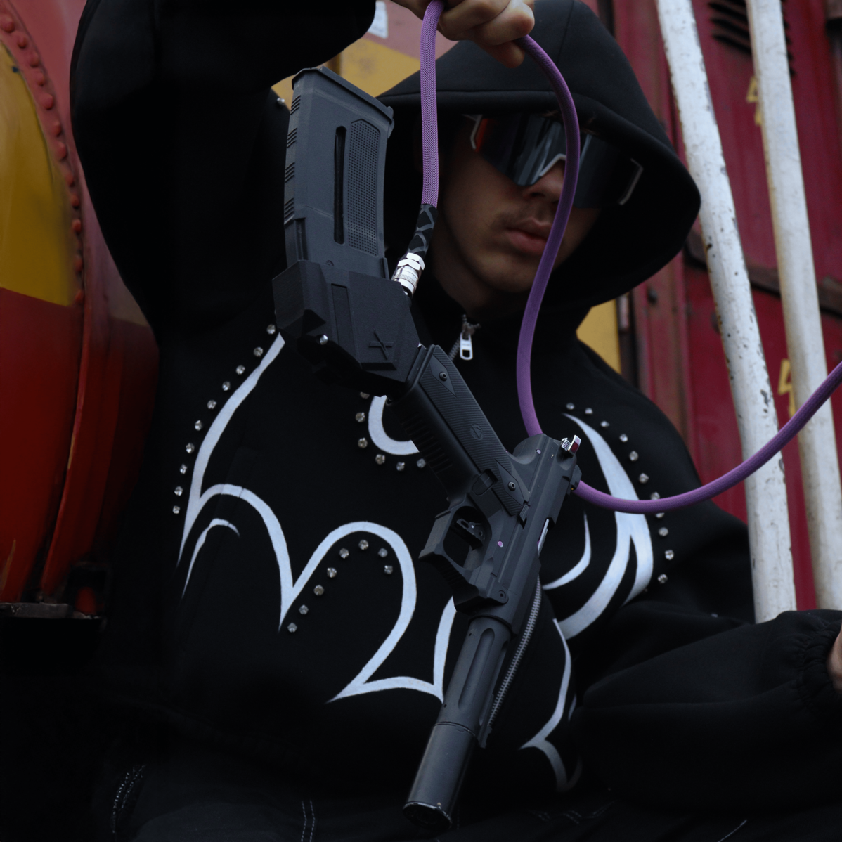 Unikátní design s téměř 90° úhlem zlepšuje manipulaci, usnadňuje střelbu v netradičních polohách a zajišťuje, že se při výměně zásobníku neztrácejí kuličky .